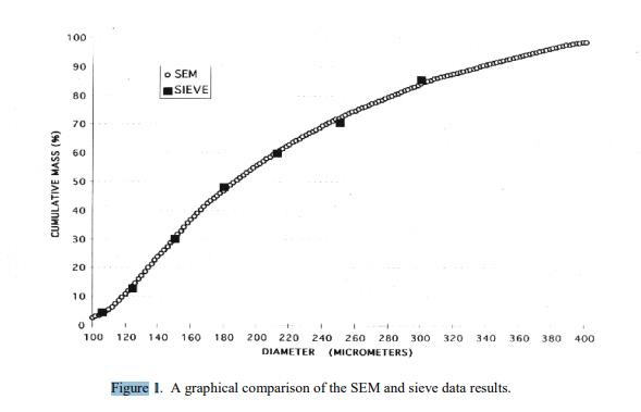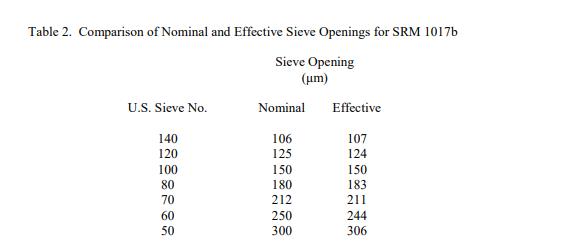 表 2 中提供了標(biāo)稱和有效篩孔的信息值,用于確定瓶子之間的變異性以及與 SEM 結(jié)果進(jìn)行比較。圖 1 是 SEM 和篩分結(jié)果的圖形比較。信息值被認(rèn)為是 SRM 用戶感興趣的值,但沒(méi)有足夠的信息來(lái)評(píng)估與該值相關(guān)的不確定性,或者只進(jìn)行了有限數(shù)量的分析 [1]。信息值不能用于建立計(jì)量溯源性。