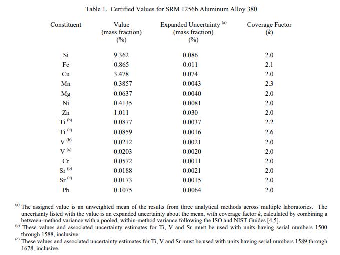 NIST SRM 1256 b 鋁合金380(標(biāo)準(zhǔn)品) 的認(rèn)證在規(guī)定不確定性范圍內(nèi)無限期有效,前提是根據(jù)本證書中給出的說明處理和存儲(chǔ) SRM(參見“使用說明”)。但是,如果 SRM 損壞或被污染,認(rèn)證將失效。